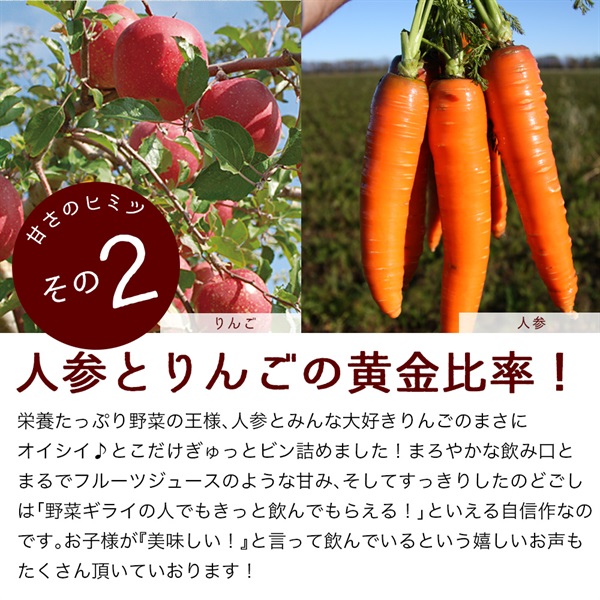 ・原材料:りんご、にんじん、濃縮にんじん、クエン酸、ビタミンC