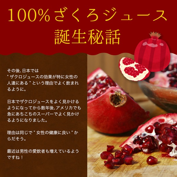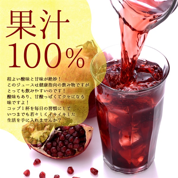 ザクロ独特の酸味はありますが、美容や健康に女性の方々から大好評いただいています。