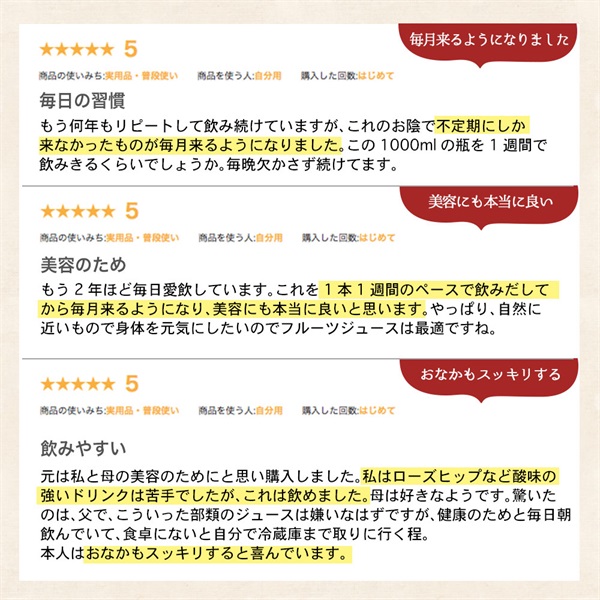 「順造選ザクロを飲んで良かった!」とのお声が寄せられています。