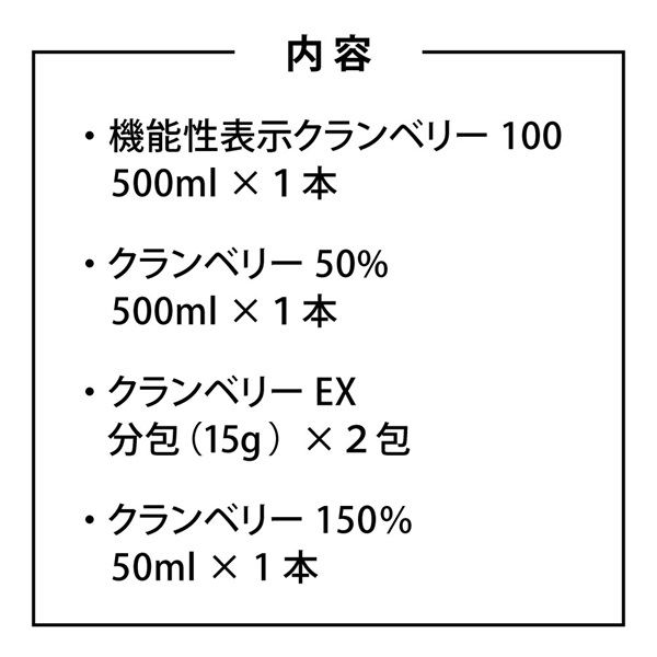 【お試しセット】クランベリージュース3種とソフトゼリーのお試しセット クランベリージュース(50%、機能性表示100% 各500ml×1本、50ml×1本)クランベリーEX 15g×2本