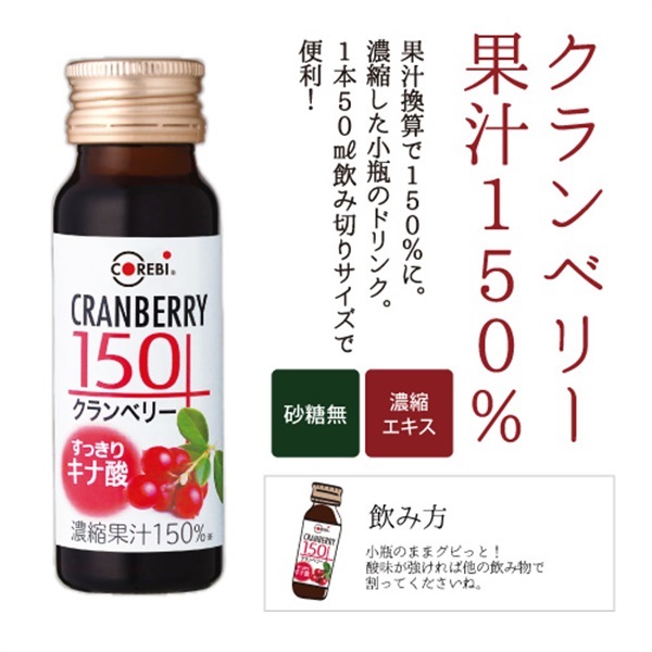 果汁100%に対して、1.5倍にまで濃~くしたので、一度にクランベリーの成分をたくさん摂ることができます。