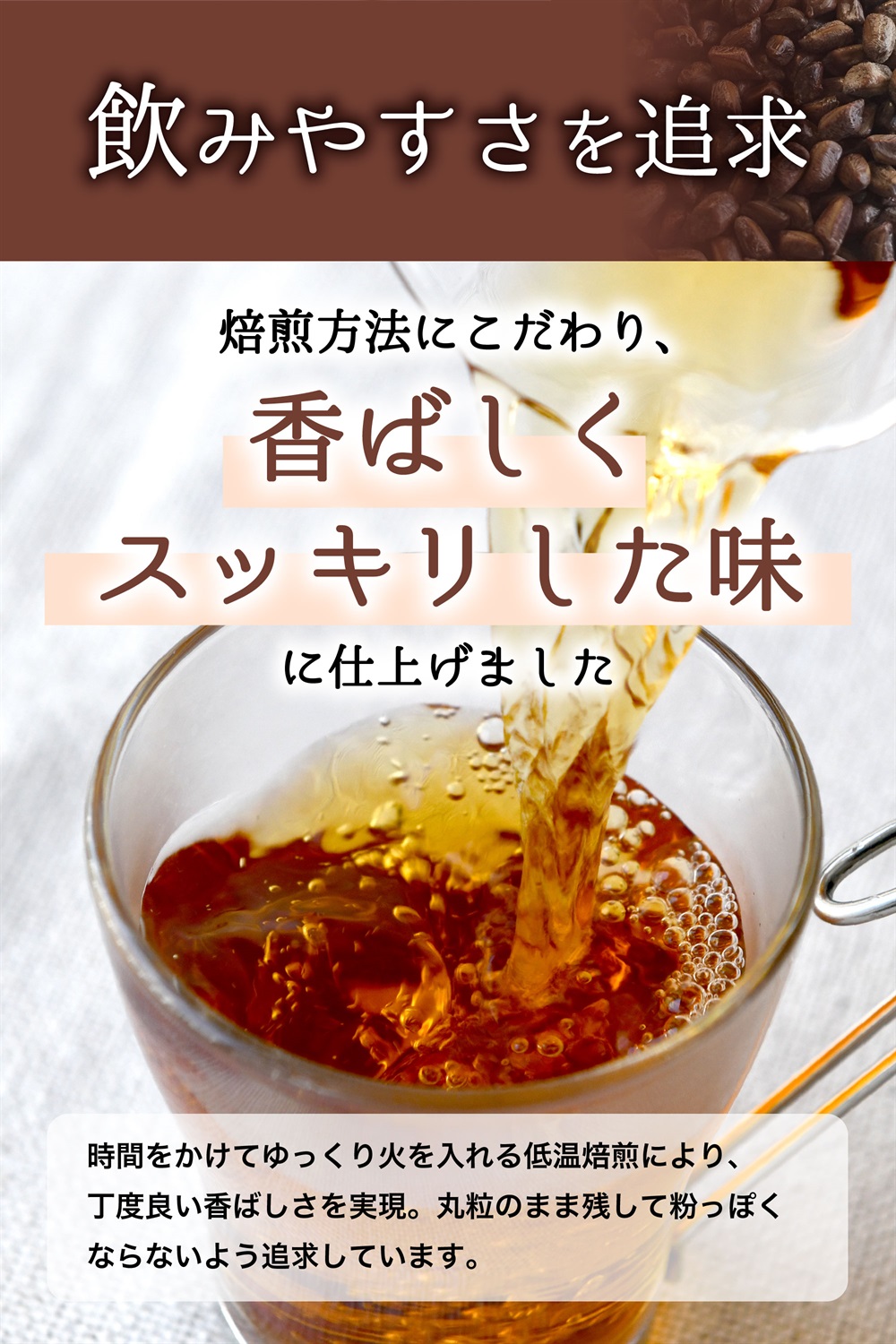 麦茶・ほうじ茶のような香ばしさで、癖がないのでどなたにも飲みやすい一杯!