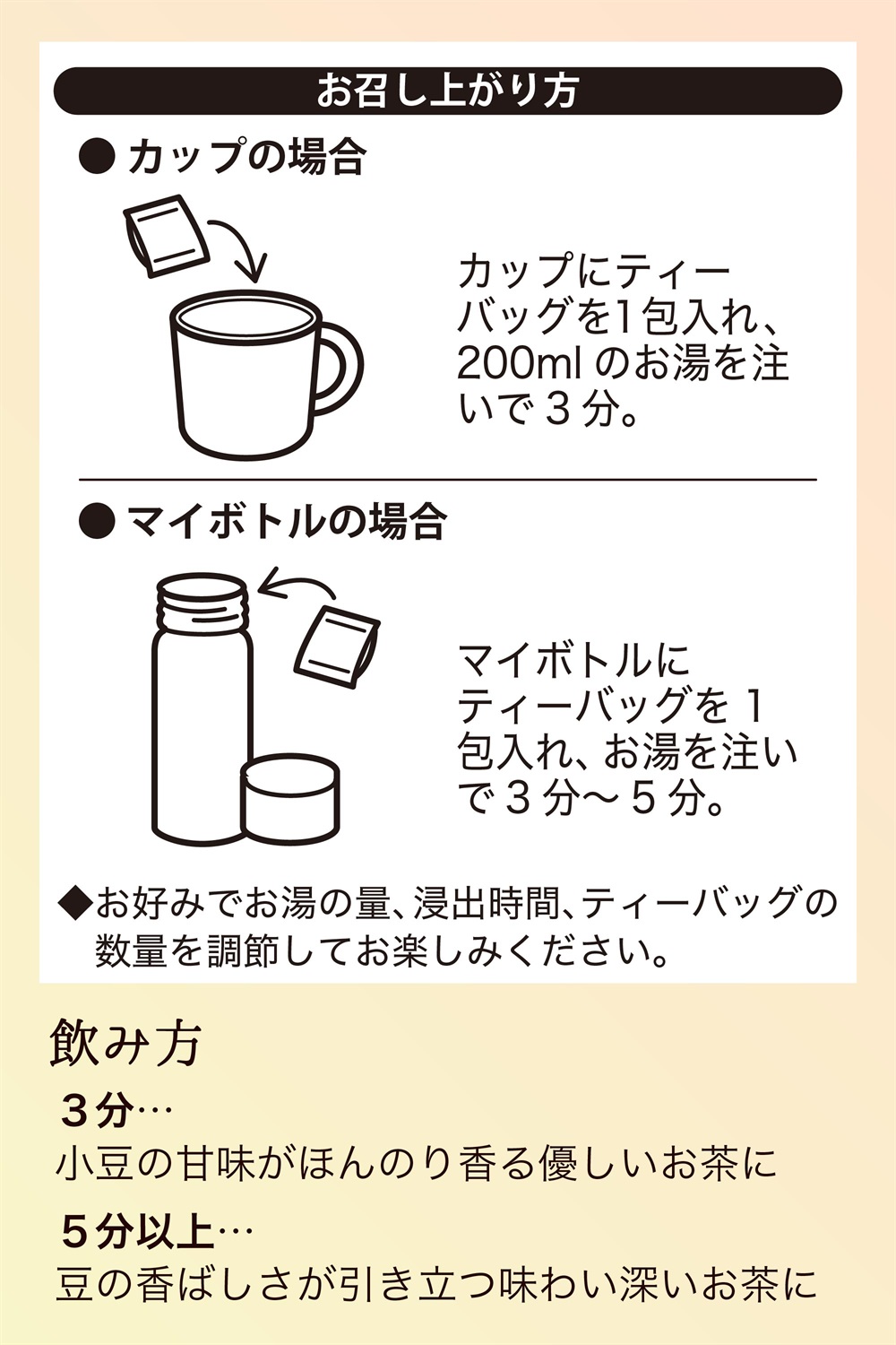 ◆お好みでお湯の量、浸出時間、ティーバッグの数量を調整してお楽しみください。